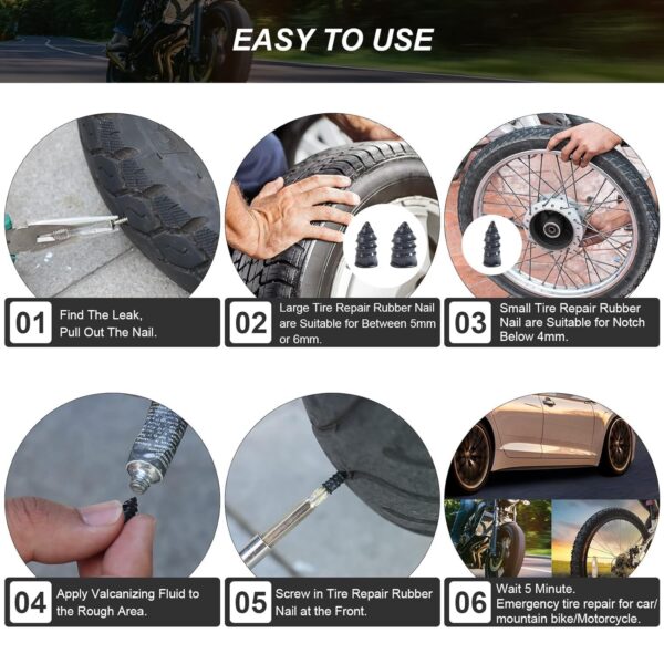 No more panic over a flat! These self-threading rubber nails offer a quick, DIY solution to fix tubeless tire punctures on the spot – no need to remove the tire or visit a mechanic.